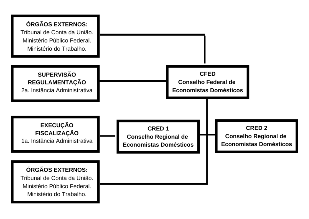 O Sistema CONFED. CRED é constituído pelo Conselho Federal de Economistas Domésticos (CONFED), com sede em Brasília-DF e pelas Regionais I e II, com sedes em Fortaleza-CE e Vitória-ES. O Regional III foi extinto no ano de 2019, tendo transferido os registros para o Regional I, no início de 2020. Todas as medidas tomadas para o processo de extinção do CRED III, bem como, da recepção dos processos pelo CRED I, foram regulamentados e supervisionados pelo Conselho Federal de Economistas Domésticos.